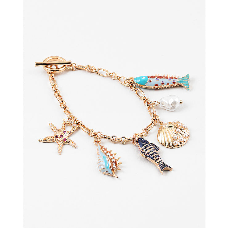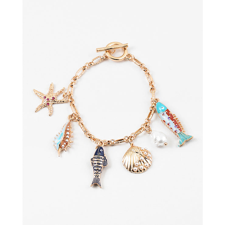 Bring the feeling of the coast wherever you go. This enamel charm bracelet features playful sea life details, glossy epoxy accents, and colorful resort-inspired charms that capture the spirit of spring and summer. Designed with a mix of beachy icons and vibrant hues, it feels like a little piece of vacation on your wrist.